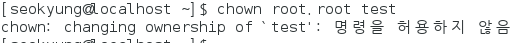 chmod로 권한을 777로 주었기 때문에 rwxrwxrwx이다. 또, chown으로 seokyung에게 권한을 준 것을 확인할 수 있다.
