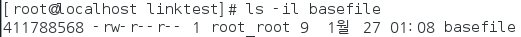 좌측의 번호가 inode 번호이다.basefile을 이동시키자 softlink에선 읽을 수 없다.