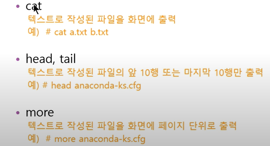 리눅스 환경에서는 드라이브를 수동으로 mount, umount해주어야 한다.리눅스에서는 숨김 설정이 없고, 앞에 .을 붙여서 표시한다.touch로 크기가 0인 파일을 만들고 rm으로 제거하고 cp로 복사해 보았다.mv는 파일 이름 바꾸는 용도로도 사용된다.rmdir로 디렉토리 삭제가 가능하다. 비지 않았을 때는 rm -rf로 한 번에 삭제 가능. 그런데 주의해서 사용할 것파일 내용을 들여다 보는 명령어들이다. vi editor 없이 확인이 가능하다.file 명령어로 file의 상태를 알 수 있다.