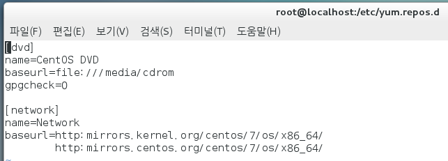 yum에서 dvd 파일에 있는 걸 설치하는데, media/cdrom에 마운트 돼있는 곳에서 설치해라. gpgcheck=0이니까, 에러가 있는지 확인하지 않는다. 이러면 yum에서 네트워크가 아닌 로컬에서 설치하므로 속도가 훨씬 빠르다. 만약 dvd상에 없는 파일이라면, 네트워크를 활용해서 설치하라.